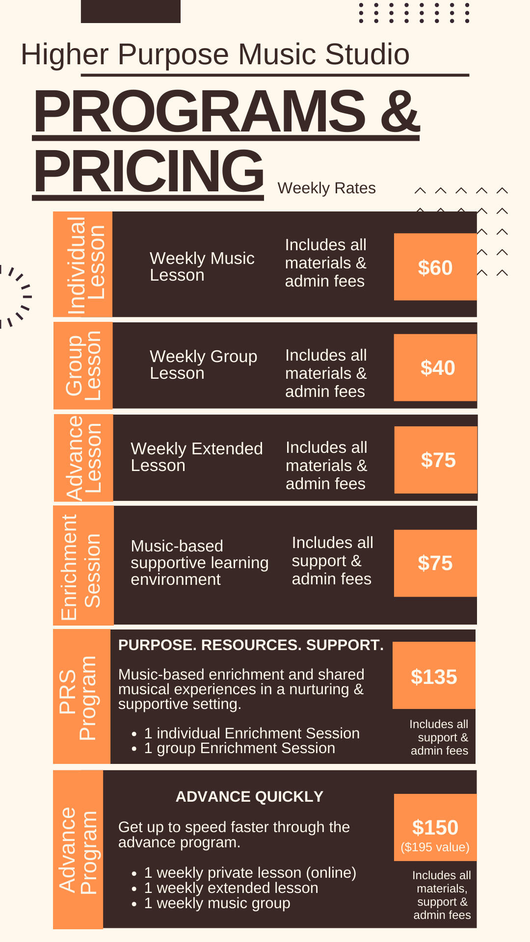Every student is unique, and we believe their music journey should be too. We take time to explore which services are the best fit for each student’s goals, interests, and learning style. From lesson structure to musical focus, our curriculum is thoughtfully tailored to meet individual needs and help every student grow with confidence and purpose.